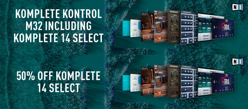 What's the Deal?During the next couple of months, you're free to take advantage of one of two deals on Komplete 14 Select: the entry-level edition of Native Instruments's popular music production software. To help fresh-faced producers get started, Komplete 14 Select includes a fat stack of virtual instruments and, while the promo lasts, comes at half the price. Better still, when you pick up a Native Instruments M32 MIDI keyboard and register it on your NI account, you get the software for free. Both deals are valid until the Sound of Summer promo ends on the 6th of July, 2023. productos relacionados |
